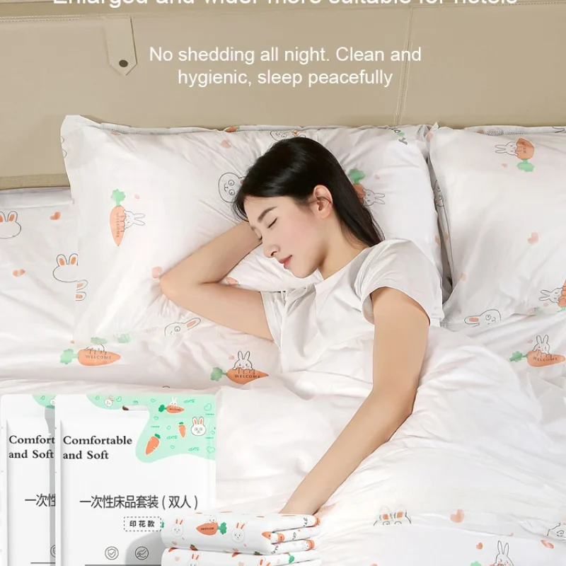 (0 Reviews) Disposable portable four-piece set of dirty hotel bedding thickened sheets travel pillowcase set high-quality non-woven material