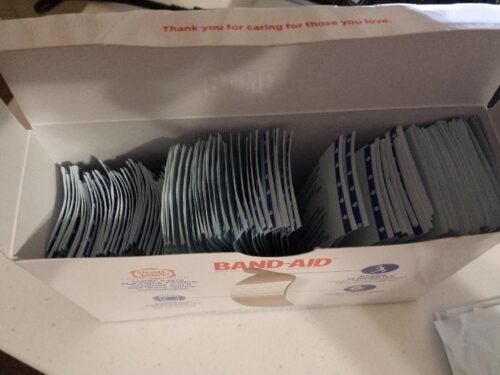 You look down; where’s my Band-Aid?? I didn’t feel it fall off...so you look around not wanting to be nasty & leave a used Band-Aid on the floor in the store, or somewhere your dog will find it and eat it.
