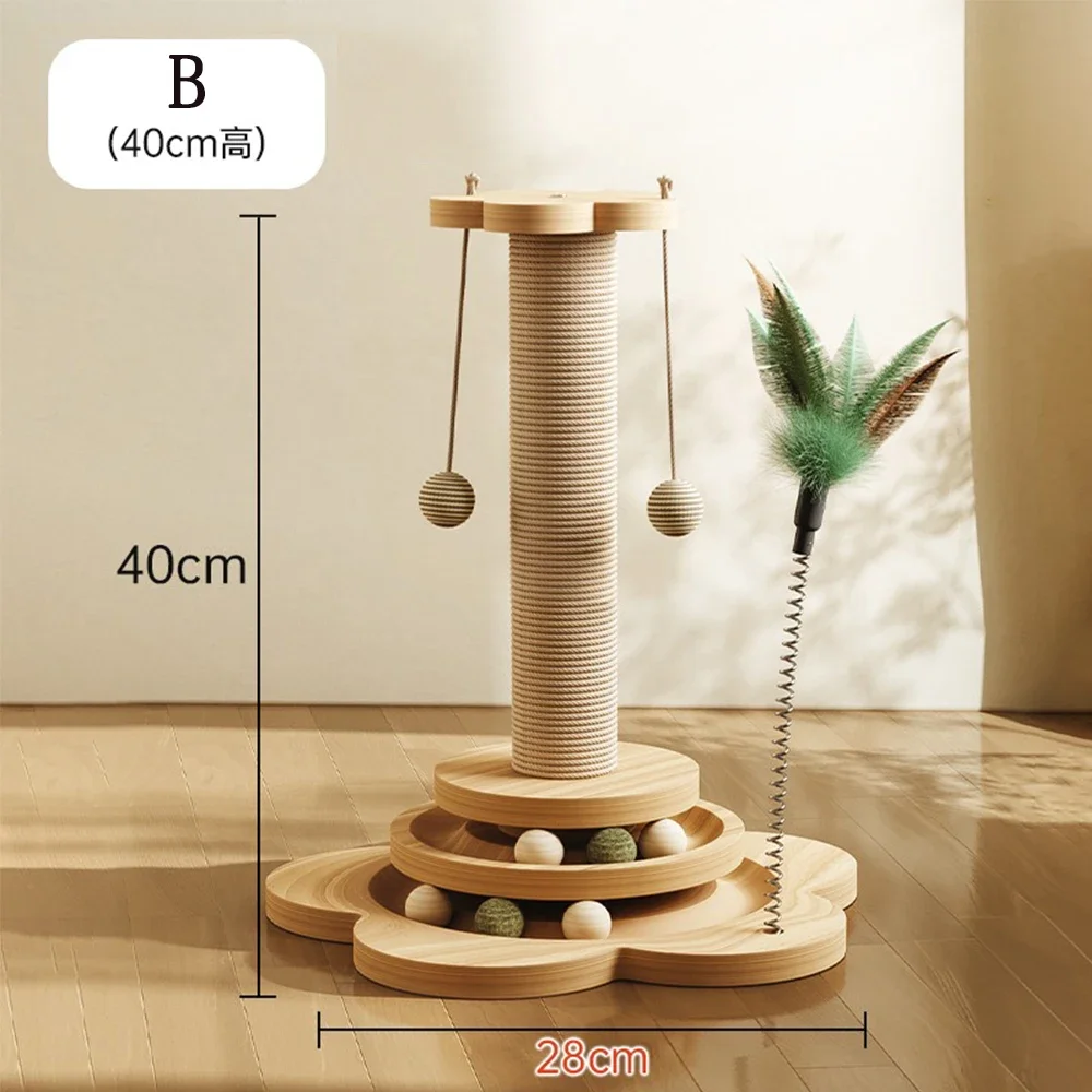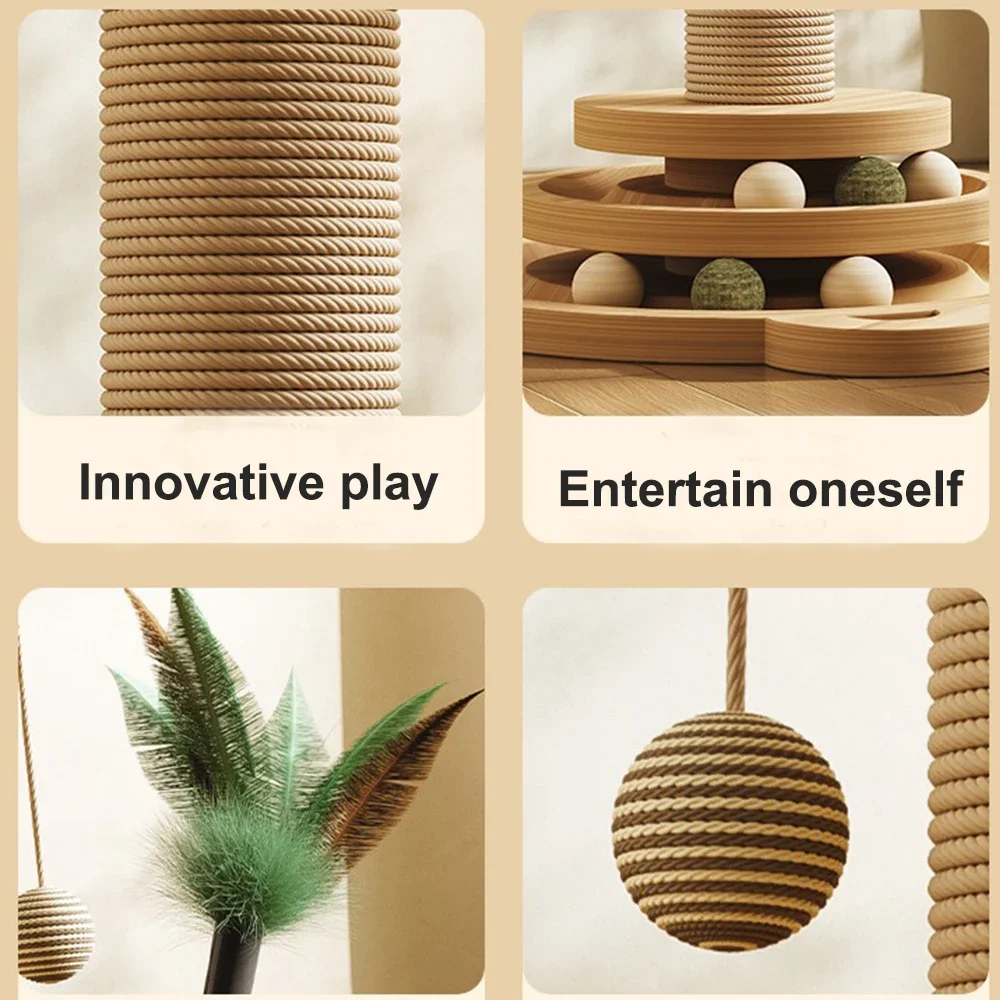 Cat Tower Durable Sisal Scratching Board Tree Pet Cat Toy Solid Wood Cat Turntable Cat Scratching Posts