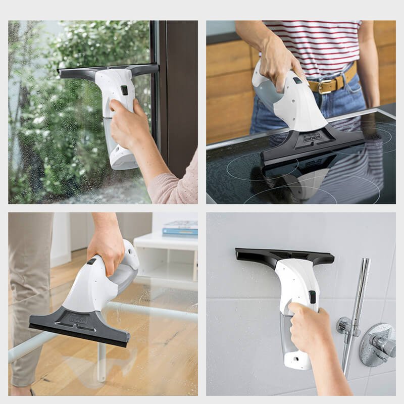 The electric window vacuum squeegee cleans 3 times faster than conventional cleaning methods. and is best used on smooth surfaces such as showers. mirrors. windows. tile. and countertops.