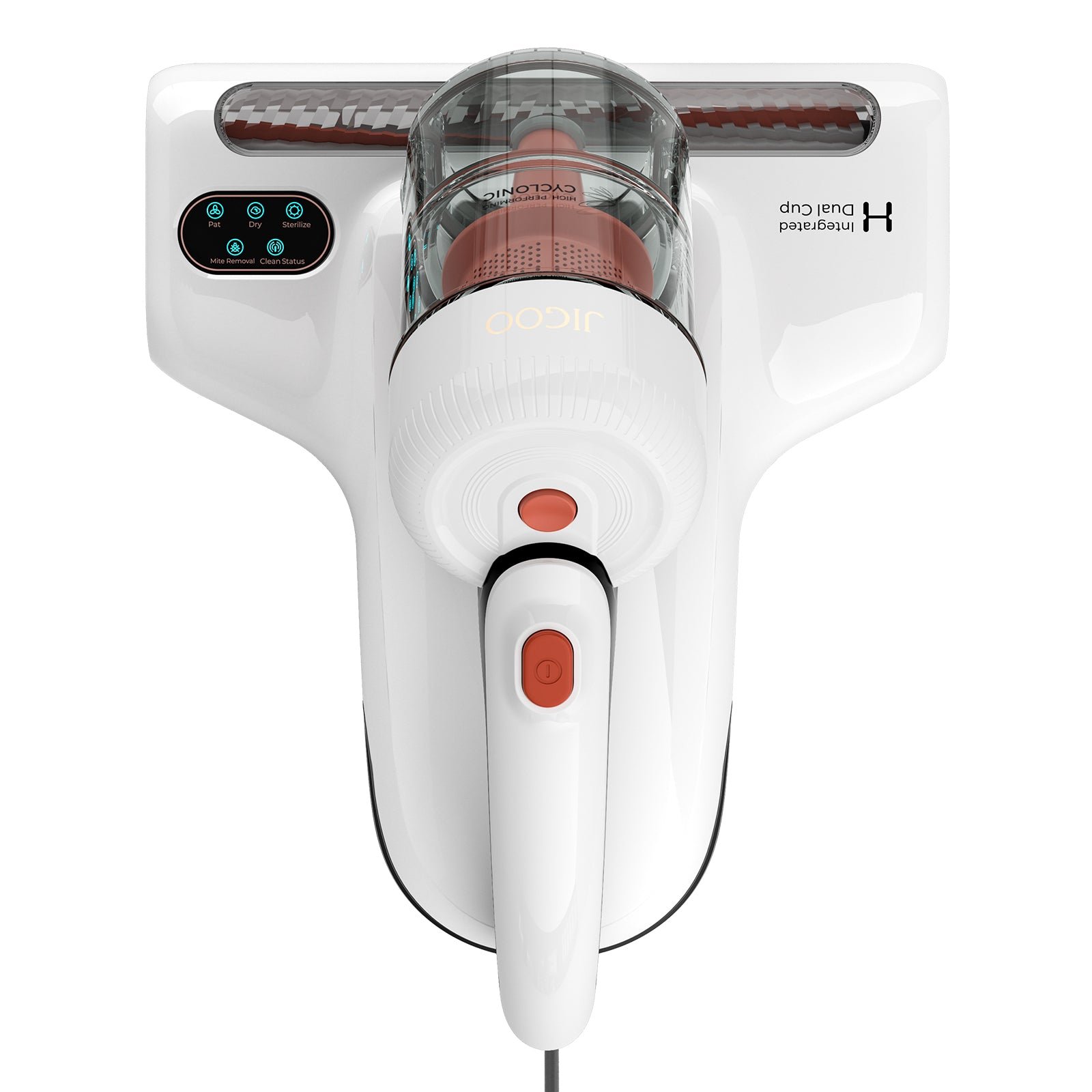 The JIGOO J200 incorporates an integrated dual-cup system. with one cup dedicated to filtration and the other to dust storage. The cyclone filter cup effectively filters dust mites while releasing clean air. achieving the highest filtration efficiency. This unique design minimizes the risk of filter clogs for an extended period of robust suction. The spacious dust cup is separated from the filter cup and offers ample storage capacity. enabling you to tackle dust mites on your bed. sofa. and carpet all at once without interruption.