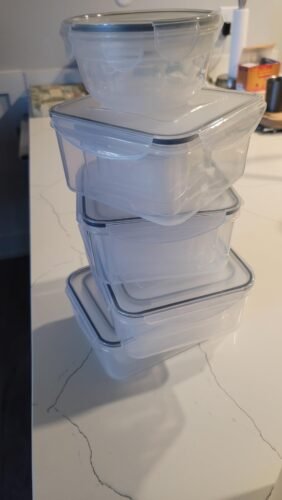 I’m a professional chef and have owned a catering and event planning company for almost 20 years, but I did not order these for our business- I got these for use at home, but my point is I’ve bought 100’s of these types of sets. First off, these are great quality. They have great airtight seals and the lids lock-tight. I do like that they include the little 2 and 3 ounce ones- these are perfect to send salad dressings in for a salad in a packed lunch. This is an awesome set for the price- there are more large ones in this set than in most. I’ve seen other reviews complaining about too many small ones, but I disagree. The only thing- and I didn’t think it was enough to knock the set down a star, because these truly are high-quality, leak-proof storage containers- they’re not crystal clear like the photos in the listing show. You can still see what’s in them, but they’re more frosted. And they’re microwave and dishwasher safe. I’m very happy with these for the cost of the set.