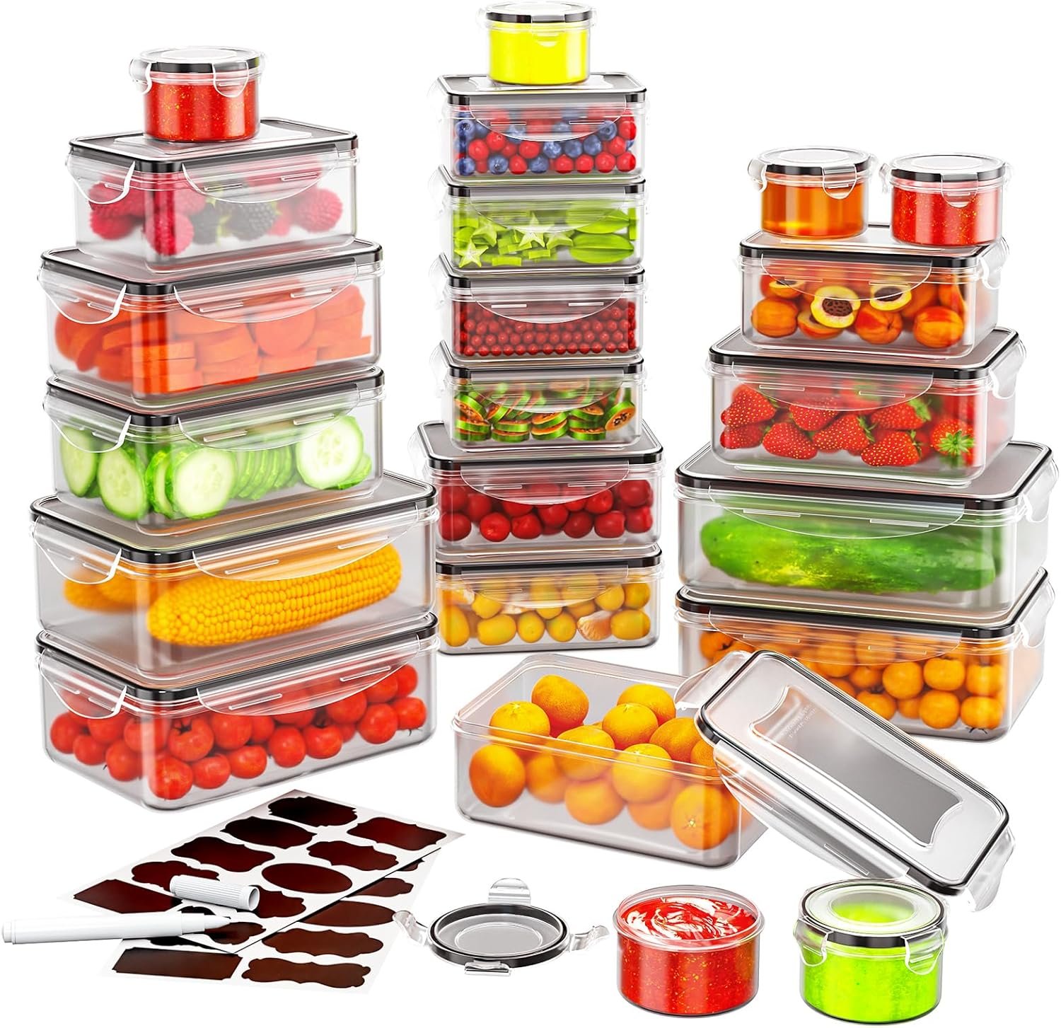 JSCARES 40 PCS Food Storage Containers with Lids Airtight (20 Lids &20 Containers) – Leakproof Meal-Prep Containers for Kitchen Storage Reusable Plastic Microwave/Dishwasher Safe with Labels & Pen