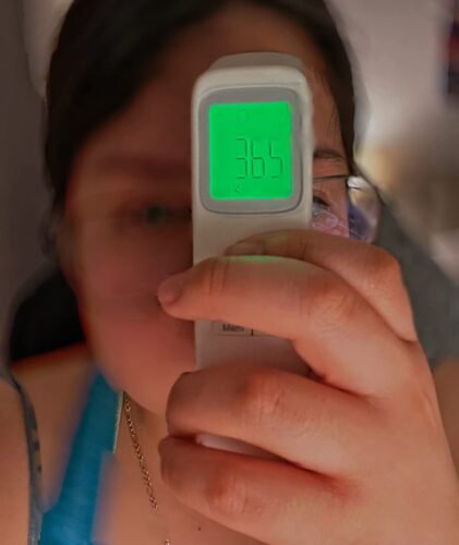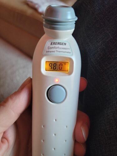 I also love the color display: green means the temperature is normal, red means it’s elevated. No guessing, very clear.