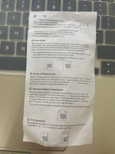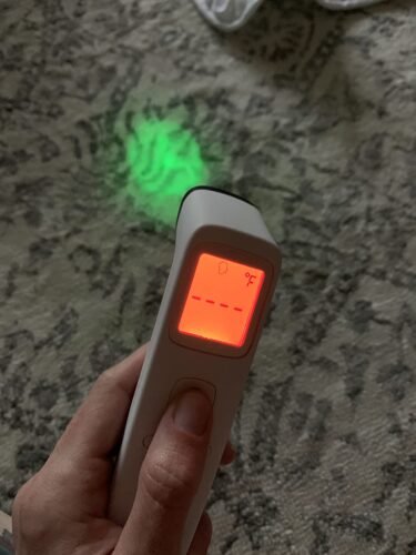 Cons- The flash of the laser is SO bright when taking kiddos temp at night that even though it was silent , it still woke her up because it’s as bright as a camera flash in your eyes, when it’s a dark room.