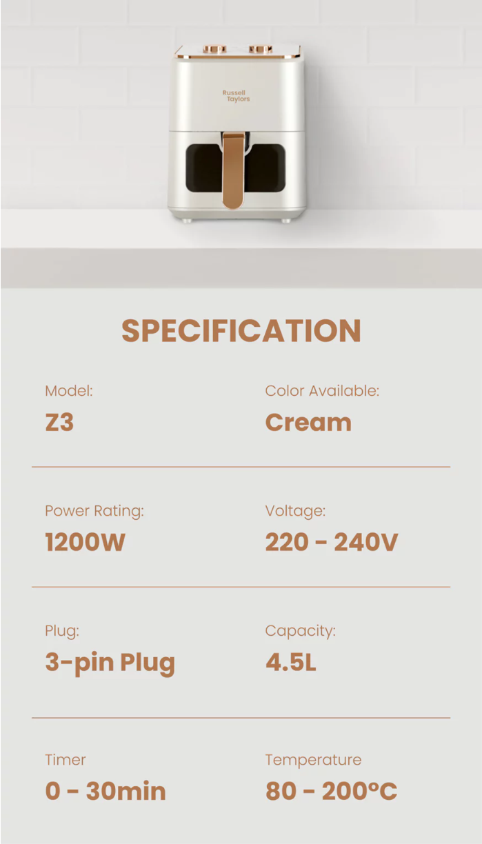 Russell Taylors 3D Visible Window Air Fryer Large (4.5L) Z3