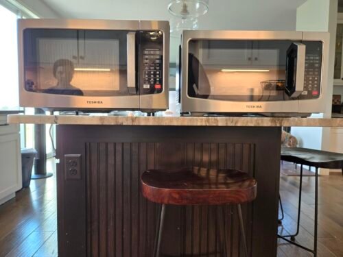 We didn't want a convection oven microwave combo, we already have a great convection oven. But I did want a microwave that used Inverter technology and had a few additional sensors. For me, it came down to a Panasonic or the Toshiba. They had nearly identical features, stats, and comparable dimensions. The deciding factor was the door handle - we wanted a door with a real handle, not one of the "push-button, pop open" doors. The Toshiba fit all criteria.