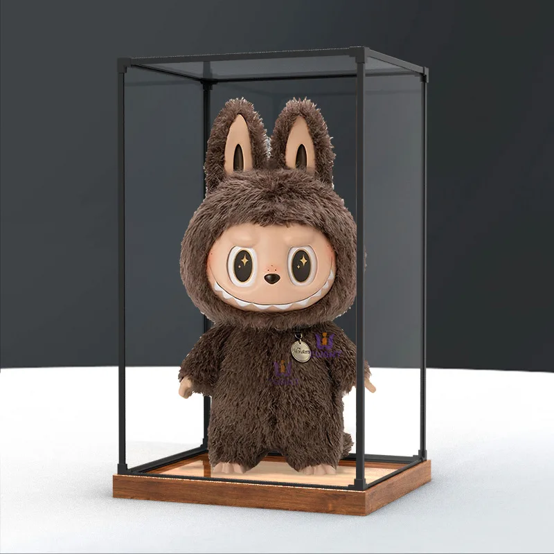 Transparent Acrylic Box Ring Led Lights Dust Cover Box Cartoon Figure Display Car Model Storage Box Collections Model Showcase