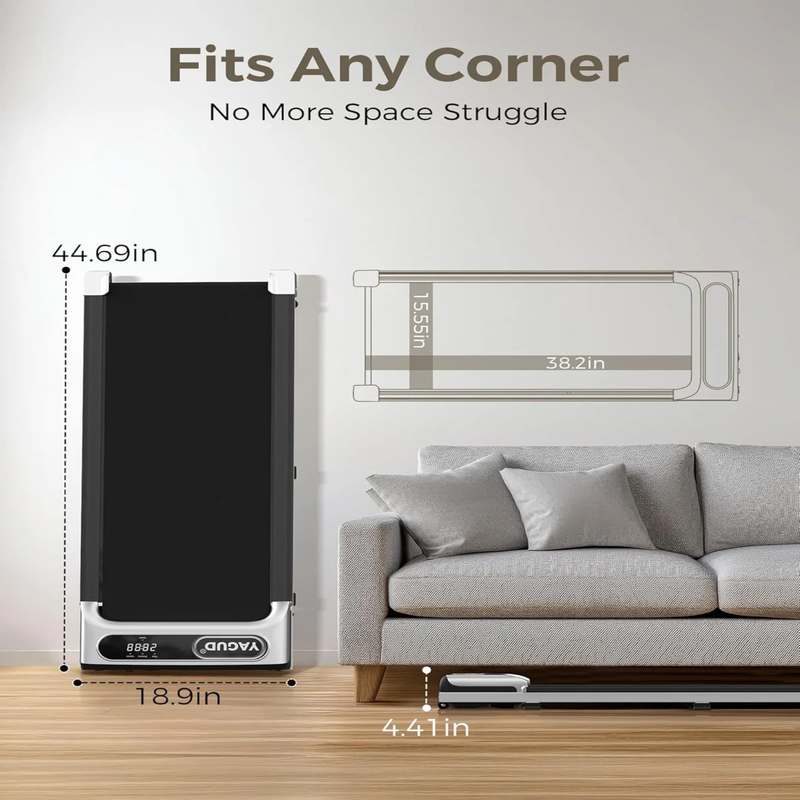 This walking pad is everything that I been wanting to help me with my health and wellness goals for my daily walking in the space and convenience of my own home. Especially during the cold days when I’m unable to go outside due to medical reasons. This walking pad is absolutely affordable , efficient and reliable for me. And I really love that I’m able to store it under my couch. Also, I am able to move it with the two front wheels very easily when not in use.